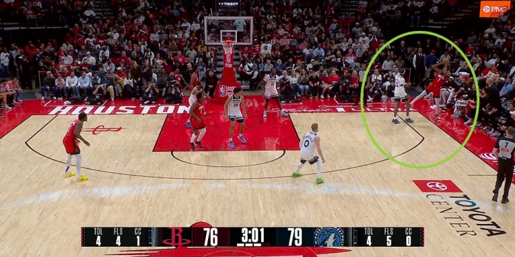 GIF-杜兰特砸麦克丹尼尔斯出界,森林狼挑战成功,杜兰特踩在界外先出界