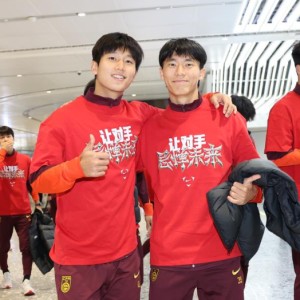 1月26日,U23国足抵达北京,大批球迷在机场迎接球队。U23国足球员身穿印有“让对手忌惮未来”的T桖走出机场,这也是全...